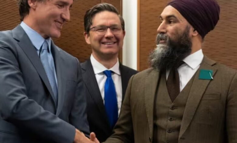 ਕਨੇਡੀਅਨ ਇਸ ਮਹਿੰਗੇ ਗੱਠਜੋੜ ਨੂੰ ਇੱਕ ਹੋਰ ਸਾਲ ਬਰਦਾਸ਼ਤ ਜਾਂ ਸਹਿਣ ਨਹੀਂ ਕਰ ਸਕਦੇ। ਕਿਸੇ ਨੇ ਤੁਹਾਨੂੰ (ਪ੍ਰਧਾਨ ਮੰਤਰੀ ਜਸਟਿਨ) ਟਰੂਡੋ ਨੂੰ ਸੱਤਾ ਵਿੱਚ ਰੱਖਣ ਲਈ ਵੋਟ ਨਹੀਂ ਦਿੱਤੀ। ਤੁਹਾਡੇ ਕੋਲ ਉਸਦੀ ਸਰਕਾਰ ਨੂੰ ਹੋਰ ਸਾਲ ਬਾਹਰ ਕੱਢਣ ਦਾ ਫਤਵਾ ਨਹੀਂ ਹੈ, ”ਪੋਲੀਏਵਰ ਨੇ ਜ਼ੋਰ ਦੇ ਕੇ ਕਿਹਾ। “ਇਸ ਸਾਲ ਦੇ ਅਕਤੂਬਰ ਵਿੱਚ ਕਾਰਬਨ ਟੈਕਸ ਚੋਣ ਸ਼ੁਰੂ ਕਰਨ ਲਈ ਇਸ ਸਤੰਬਰ ਵਿੱਚ ਮਹਿੰਗੇ ਗੱਠਜੋੜ ਵਿੱਚੋਂ ਬਾਹਰ ਨਿਕਲੋ ਅਤੇ ਸਰਕਾਰ ਵਿੱਚ ਅਵਿਸ਼ਵਾਸ ਦਾ ਵੋਟ ਦਿਓ। ਜਾਂ ਤੁਸੀਂ ਹਮੇਸ਼ਾ ਲਈ ‘ਸੇਲਆਊਟ ਸਿੰਘ’ ਵਜੋਂ ਜਾਣੇ ਜਾਂਦੇ ਜਾਵੋਗੇ । ਬੀਤੇ ਦਿਨਾਂ ਦੀਆਂ ਕਨੇਡਾ ਵਿੱਚ ਵਧਦੀਆਂ ਸਰਗਰਮੀਆਂ ਛੇਤੀ ਚੋਣਾਂ ਵੱਲ ਇਸ਼ਾਰਾ ਕਰ ਰਹੀਆਂ ਹਨ ।ਜੇ ਇਸ ਤਰਾਂ ਹੁੰਦਾ ਹੈ ਤਾਂ ਟਰੂਡੋ ਦੀ ਅਗਵਾਈ ਵਾਲੀ ਘੱਟ ਗਿਣਤੀ ਸਰਕਾਰ ਟੁੱਟ ਸਕਦੀ ਹੈ ।ਸ਼ਰਵਿਆਂ ਮੁਤਾਬਿਕ ਅਗਲੀ ਸਰਕਾਰ ਕੰਸ਼ਰਵੇਟਿਵ ਪਾਰਟੀ ਦੀ ਬਣ ਸਕਦੀ ਹੈ