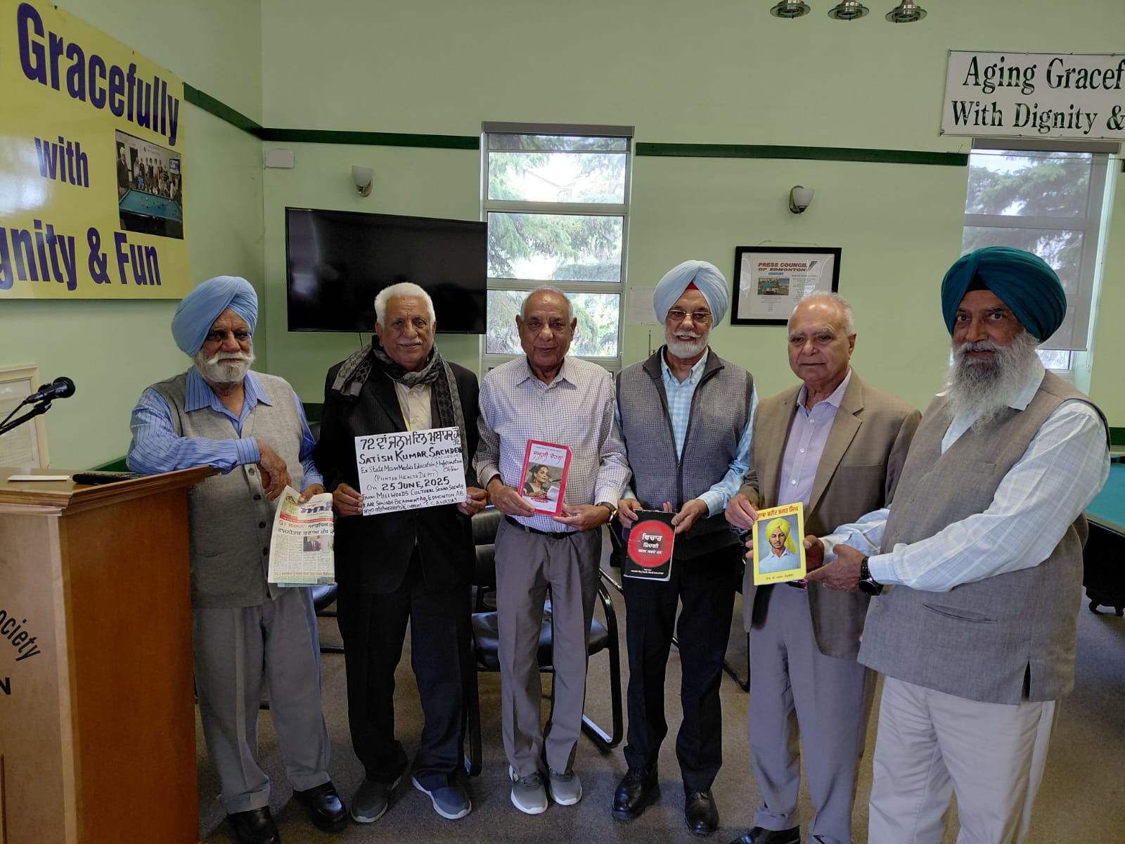 ਐਡਮਿੰਟਨ 3 ਜੁਲਾਈ (ਪੰਜਾਬੀ ਅਖ਼ਬਾਰ ਬਿਊਰੋ) ਮਿੱਲਵੁਡ ਕਲਚਰਲ ਸੁਸਾਇਟੀ ਸੀਨੀਅਰਜ ਰਿਟਾਇਰਡ ਐਂਡ ਸੈਂਮੀ ਰਿਟਾਇਰਡ ਐਡਮਿੰਟਨ ਦੇ ਸੀਨੀਅਰ ਮੈਂਬਰ ਸਤੀਸ਼ ਸਚਦੇਵਾ ਨੇ ਆਪਣਾ 72 ਵਾਂ ਜਨਮਦਿਨ ਨਿਵੇਕਲੇ ਢੰਗ ਨਾਲ ਮਨਾਇਆ । ਇਸ ਮੌਕੇ ਉਹ ਚੱਲਦੀ ਫਿਰਦੀ ਲਾਇਬ੍ਰੇਰੀ ਸੁਸਾਇਟੀ ਵਿੱਚ ਲੈ ਕੇ ਆਏ । ਉਨ੍ਹਾਂ ਮੈਬਰਾਂ ਨੂੰ ਆਪਣੀ ਆਪਣੀ ਪਸੰਦ ਦੀ ਕਿਤਾਬ ਲੈ ਕੇ ਜਾਣ ਲਈ ਦਿੱਤੀ । ਇਸ ਮੌਕੇ ਉਨ੍ਹਾਂ ਬੋਲਦਿਆਂ ਕਿਹਾ ਕਿ ਵਧੀਆ ਤੇ ਉਸਾਰੂ ਸਾਹਿਤ ਦੀਆਂ ਚੰਗੀਆਂ ਕਿਤਾਬਾਂ ਪੜ੍ਹਨ ਨਾਲ ਜ਼ਿੰਦਗੀ ਜਿਉਣ ਦਾ ਨਜ਼ਰੀਆ ਬਦਲ ਜਾਂਦਾ ਹੈ । ਬੱਚਿਆਂ ਨੂੰ ਮਾਂ ਬੋਲੀ ਨਾਲ ਜੋੜਿਆ ਜਾਣਾ ਚਾਹੀਦਾ ਹੈ । ਜਿੰਨਾ ਮਾਨਸਿਕ ਵਿਕਾਸ ਬੱਚੇ ਦਾ ਮਾਂ ਬੋਲੀ ਨਾਲ ਹੋ ਸਕਦਾ ਹੈ,ਵਿਦੇਸ਼ੀ ਭਾਸ਼ਾ ਉਸਦੇ ਸਾਹਮਣੇ ਹੀਣੀ ਪੈ ਜਾਂਦੀ ਹੈ । ਉਨ੍ਹਾਂ ਬੋਲਦਿਆਂ ਕਿਹਾ ਕਿ ਜਰਮਨੀ, ਜਪਾਨ , ਫਰਾਂਸ, ਸਵਿੱਟਜਰਲੈਂਡ, ਚੀਨ ਵਿੱਚ ਆਪਣੀ ਮਾਂ ਬੋਲੀ ਵਿੱਚ ਸਿੱਖਿਆ ਦਿੱਤੀ ਜਾਂਦੀ ਹੈ। ਵੱਖ-ਵੱਖ ਭਾਸ਼ਾਵਾਂ ਸਿੱਖਣੀਆਂ ਕੋਈ ਮਾੜੀ ਗੱਲ ਨਹੀਂ,ਪਰ ਸਾਨੂੰ ਆਪਣੀ ਮਾਂ ਬੋਲੀ ਨਹੀਂ ਵਿਸਾਰਨੀ ਚਾਹੀਦੀ । ਇਸ ਮੌਕੇ ਪਾਠਕਾਂ ਨੂੰ ਪੰਜਾਬੀ ਅਖ਼ਬਾਰ ਨੂੰ ਪੜ੍ਹਨ ਲਈ ਪ੍ਰੇਰਿਤ ਕੀਤਾ ਗਿਆ। ਕਿਤਾਬਾਂ ਵੀ ਪੜ੍ਹਨ ਲਈ ਦਿੱਤੀਆਂ ਗਈਆਂ। ਸੰਸਥਾ ਦੇ ਪ੍ਰਧਾਨ ਸ਼੍ਰੀ ਬਲਵੀਰ ਸਿੰਘ ਜੀ ਹੋਰਾਂ ਸਭਨਾਂ ਦਾ ਧੰਨਵਾਦ ਕੀਤਾ ।