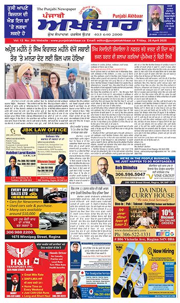 ਪੰਜਾਬੀ ਅਖ਼ਬਾਰ ਅੰਕ 25 April 2025