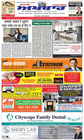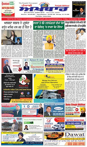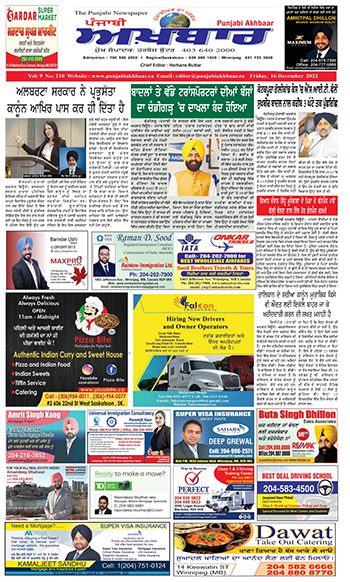 ਪੰਜਾਬੀ ਅਖ਼ਬਾਰ ਅੰਕ 16 Dec 2022