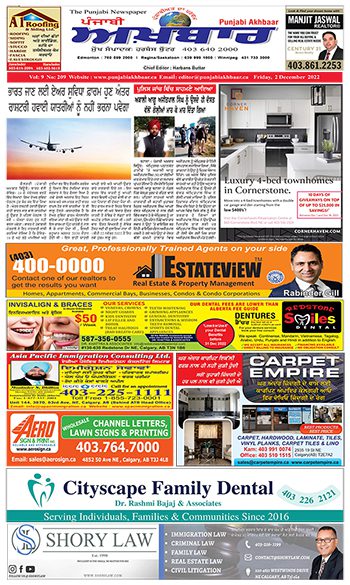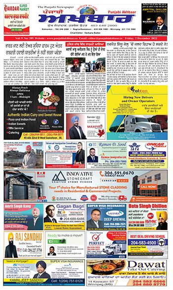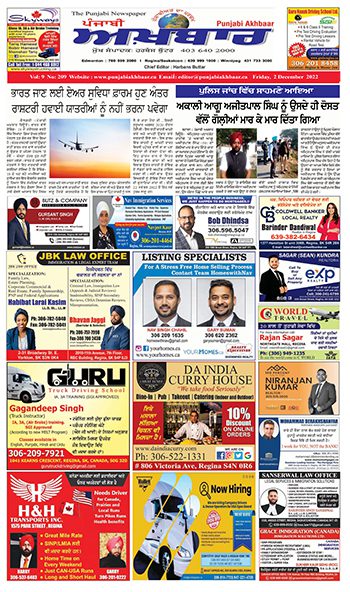 ਪੰਜਾਬੀ ਅਖ਼ਬਾਰ ਅੰਕ 2 Dec 2022