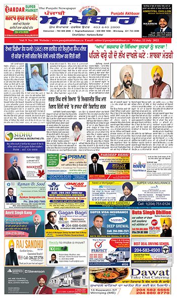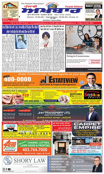 ਪੰਜਾਬੀ ਅਖ਼ਬਾਰ ਅੰਕ 22 July 2022