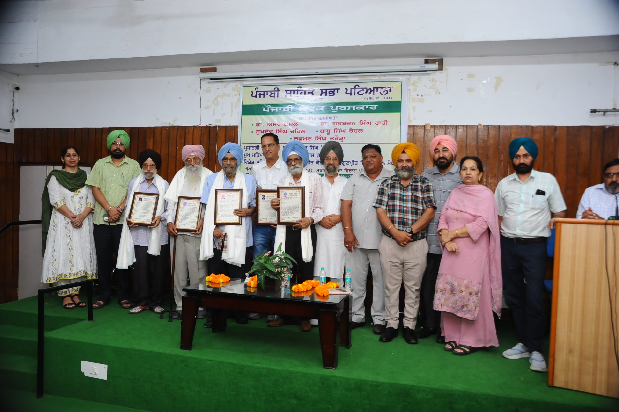ਪੰਜਾਬੀ ਸਾਹਿਤ ਸਭਾ ਪਟਿਆਲਾ ਵੱਲੋਂ ਡਾ: ਅਮਰ ਕੋਮਲ, ਡਾ: ਗੁਰਬਚਨ ਸਿੰਘ ਰਾਹੀ, ਬਾਬੂ ਸਿੰਘ ਰੈਹਲ, ਸੁਖਦੇਵ ਸਿੰਘ ਚਹਿਲ ਅਤੇ ਲਛਮਣ ਸਿੰਘ ਤਰੌੜ੍ਹਾ ਨੂੰ ‘ਪੰਜਾਬੀ ਸੇਵਕ* ਪੁਰਸਕਾਰ ਪ੍ਰਦਾਨ