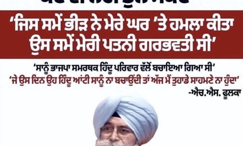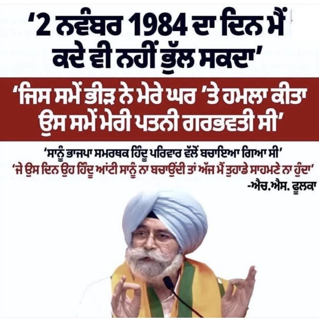 ਨਾਮਵਰ ਵਕੀਲ ਸਰਦਾਰ ਫੂਲਕਾ ਜੀ ਨੇ ਭਾਜਪਾ ‘ਚ ਸ਼ਾਮਲ ਹੋਣ ਦਾ ਕਾਰਨ ਇਹ ਦੱਸਿਆ ਐ ਕਿ ਨਵੰਬਰ ਚੁਰਾਸੀ ਦੇ ਦਿੱਲੀ ਸਿੱਖ ਕਤਲੇਆਮ ਵੇਲੇ ਸਾਡੇ ਪ੍ਰਵਾਰ ਨੂੰ ਇਕ ‘ਭਾਜਪਈ ਅੰਟੀ’ ਨੇ ਬਚਾਇਆ ਸੀ !ਉਨ੍ਹਾਂ ਦਾ ਇਹ ਕਾਰਨ ਪੜ੍ਹ ਕੇ ਮੈਨੂੰ ਵੀ ‘ਆਪਣਾ ਕਾਰਨ’ ਚੇਤੇ ਆ ਗਿਆ!