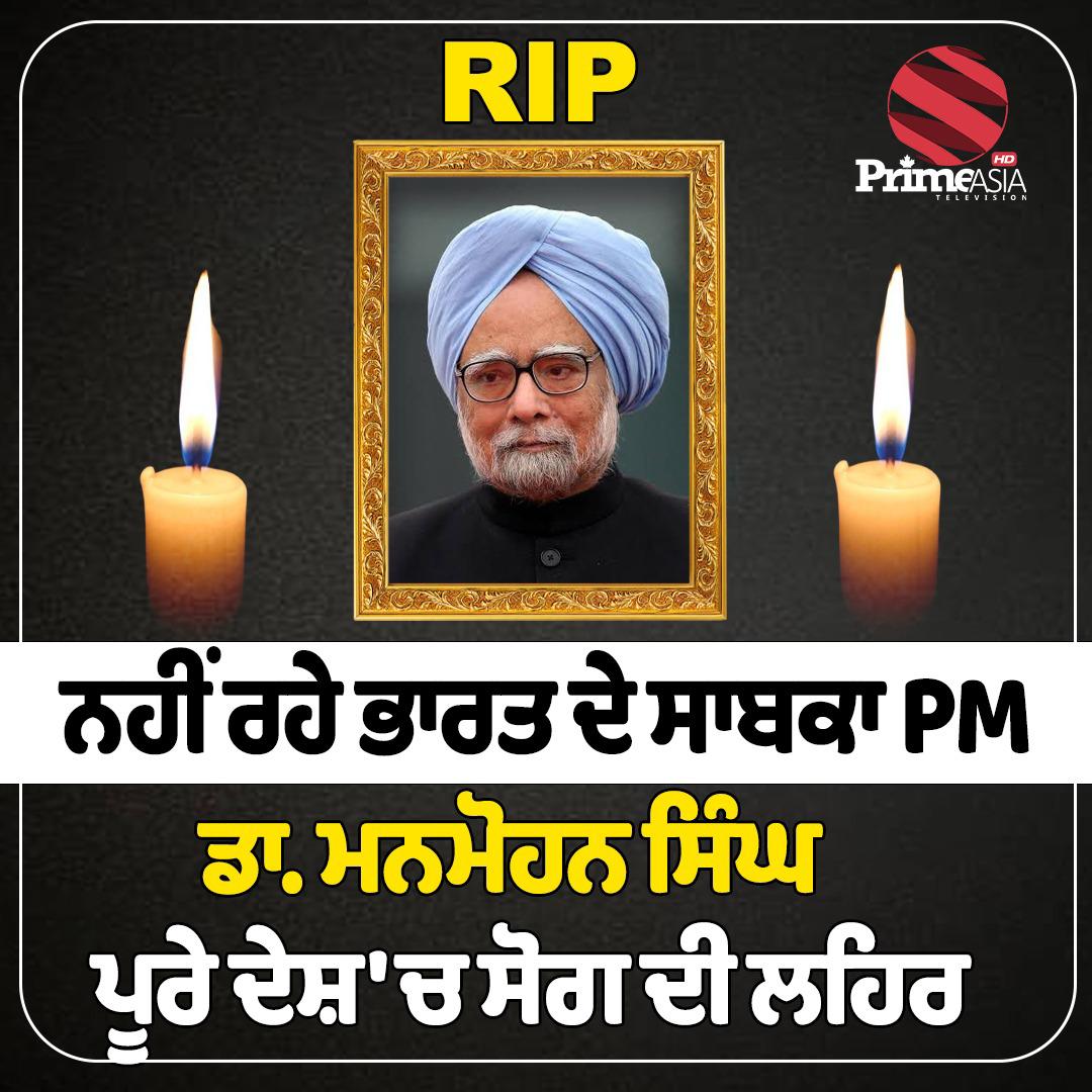 ਨਵੀਂ ਦਿੱਲੀ, 26 ਦਸੰਬਰ, (ਪੰਜਾਬੀ ਅਖ਼ਬਾਰ ਬਿਊਰੋ) ਭਾਰਤ ਦੇ ਸਾਬਕਾ ਪ੍ਰਧਾਨ ਮੰਤਰੀ ਮਨਮੋਹਨ ਸਿੰਘ ਦਾ ਅੱਜ ਦੇਹਾਂਤ ਹੋ ਗਿਆ ਹੈ। ਸਾਬਕਾ ਪ੍ਰਧਾਨ ਮੰਤਰੀ ਮਨਮੋਹਨ ਸਿੰਘ ਦੀ ਅਚਾਨਕ ਸਿਹਤ ਖਰਾਬ ਹੋਣ ਤੋਂ ਬਾਅਦ ਉਨ੍ਹਾਂ ਨੂੰ ਦਿੱਲੀ ਦੇ ਏਮਜ਼ ਵਿੱਚ ਭਰਤੀ ਕਰਵਾਇਆ ਗਿਆ ਸੀ। 92 ਸਾਲਾ ਮਨਮੋਹਨ ਸਿੰਘ ਨੇ ਅੱਜ ਏਮਜ਼ ਵਿਖੇ ਭਾਰਤੀ ਸਮੇ ਅਨੁਸਾਰ ਸਾਮੀੰ 9:51 ਵਜੇ ਆਖਰੀ ਸ਼ਾਹ ਲਏ। ਆਪਣੇ ਲੀਡਰ ਦੀ ਮੌਤ ਦਾ ਸੁਨੇਹਾ ਮਿਲਦੇ ਹੀ ਕਾਂਗਰਸ ਪਾਰਟੀ ਨੇ ਆਪਣੇ ਸਾਰੇ ਪ੍ਰੋਗਰਾਮ ਰੱਦ ਕਰ ਦਿੱਤੇ ਹਨ। ਜ਼ਿਕਰਯੋਗ ਹੈ ਕਿ ਡਾਕਟਰ ਮਨਮੋਹਨ ਸਿੰਘ ਯੂਪੀਏ ਦੀ ਸਰਕਾਰ ਸਮੇਂ ਸਾਲ 2004 ਤੋਂ ਸਾਲ 2014 ਤੱਕ ਭਾਰਤ ਦੇ ਪ੍ਰਧਾਨ ਮੰਤਰੀ ਰਹੇ ਸਨ। ਉਹਨਾਂ ਦੇ ਕਾਰਜਕਾਲ ਦੌਰਾਨ ਉਹਨਾਂ ਦੀਆਂ ਸੇਵਾਵਾਂ ਨੂੰ ਹਮੇਸਾ ਯਾਦ ਕੀਤਾ ਜਾਵੇਗਾ। 26 ਸਤੰਬਰ 1932 ਨੂੰ ਜਨਮੇ ਪ੍ਰਧਾਨ ਮੰਤਰੀ ਬਣਨ ਤੋਂ ਪਹਿਲਾਂ ਉਹ ਭਾਰਤੀ ਰਿਜ਼ਰਵ ਬੈਂਕ ਦੇ ਗਵਰਨਰ ਦੇ ਅਹੁਦੇ ਉੱਪਰ ਵੀ ਰਹੇ ਸਨ।