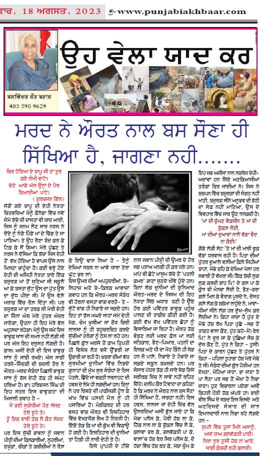 ਮਰਦ ਨੇ ਔਰਤ ਨਾਲ ਬਸ ਸੌਣਾ ਹੀ ਸਿੱਖਿਆ ਹੈ, ਜਾਗਣਾ ਨਹੀ-