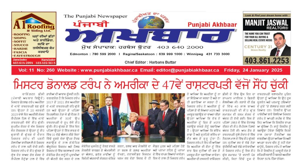 ਮਿਸਟਰ ਡੋਨਾਲਡ ਟਰੰਪ ਨੇ ਅਮਰੀਕਾ ਦੇ 47ਵੇਂ ਰਾਸ਼ਟਰਪਤੀ ਵੱਜੋਂ ਸੌਂਹ ਚੁੱਕੀ
