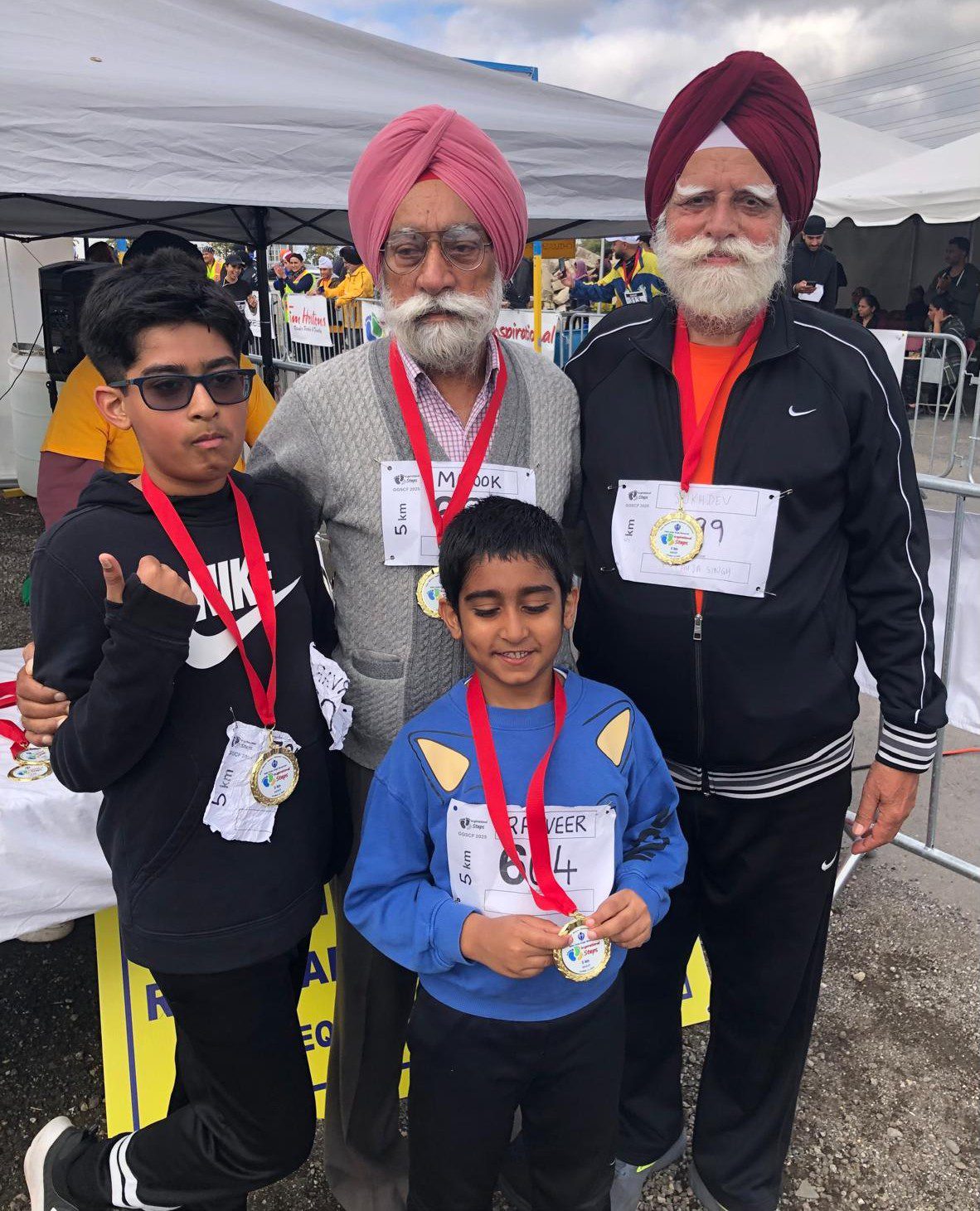 ਇਹ ਸਾਰੀਆਂ ਦੌੜਾਂ ਮਿਸੀਸਾਗਾ ਏਰੀਏ ਵਿੱਚ ਪੈਂਦੇ ਡਿਕਸੀ ਤੇ ਡੇਰੀ ਇੰਟਰਸੈੱਕਸ਼ਨ ਨੇੜੇ ਸਥਿਤ ਗੁਰਦੁਆਰਾ ਸਾਹਿਬ ਖਾਲਸਾ ਦਰਬਾਰ ਦੇ ਖੁੱਲ੍ਹੇ ਮੈਦਾਨ ਵਿੱਚ ਬਣਾਏ ਗਏ ‘ਫ਼ਿਨਿਸ਼ ਪੁਆਇੰਟ’ ‘ਤੇ ਆ ਕੇ ਸਮਾਪਤ ਹੋਈਆਂ। ਬਾਅਦ ਦੁਪਹਿਰ ਲੱਗਭੱਗ 1.30 ਵਜੇ ਦੌੜਾਕ ਇੱਥੇ ‘ਫ਼ਿਨਿਸ਼ ਪੁਆਇੰਟ’ ‘ਤੇ ਪਹੁੰਚਣੇ ਸ਼ੁਰੂ ਹੋ ਗਏ। ਉਨ੍ਹਾਂ ਦੇ ਇੱਥੇ ਪਹੁੰਚਣ ‘ਤੇ ਦਰਸ਼ਕਾਂ ਵੱਲੋਂ ਜ਼ੋਰਦਾਰ ਤਾੜੀਆਂ ਨਾਲ ਉਨ੍ਹਾਂ ਦਾ ਸੁਆਗ਼ਤ ਕੀਤਾ ਜਾ ਰਿਹਾ ਸੀ। ਸੱਜੇ ਪਾਸੇ ਲਗਾਏ ਗਏ ਇੱਕ ਸ਼ਾਮਿਆਨੇ ਹੇਠ ਈਵੈਂਟ ਦੇ ਵਾਲੰਟੀਅਰ ਤੇ ਦਰਸ਼ਕ ਦੌੜਾਕਾਂ ਦੀ ਦੌੜ ਜਾਂ ਵਾੱਕ ਦੀ ਸਮਾਪਤੀ ‘ਤੇ ਉਨ੍ਹਾਂ ਦੇ ਗਲ਼ਾਂ ‘ਚ ਮੈਡਲ ਪਾ ਕੇ ਉਨ੍ਹਾਂ ਦੀ ਭਰਪੂਰ ਹੌਸਲਾ-ਅਫ਼ਜ਼ਾਈ ਕਰ ਰਹੇ ਸਨ।