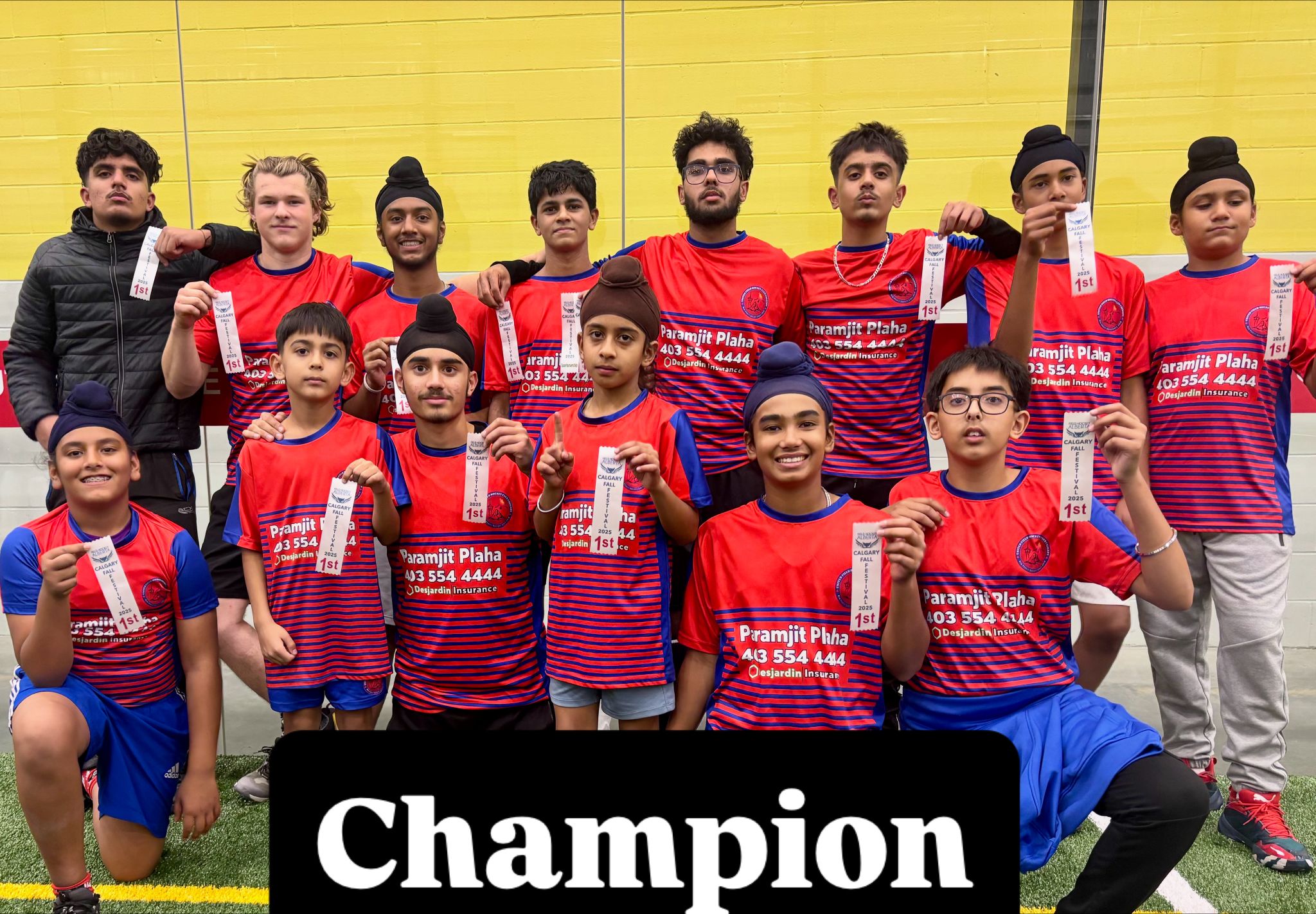ਫਾਲ ਫੈਸਟੀਵਲ ਅੰਡਰ 16 ਚੈਪੀਅਨ -ਯੂਨਾਇਟਡ ਟੀਮ ਸਾਰੇ ਮੈਚ ਜੇਤੂ ਰਹੀ ਤੇ ਫਾਈਨਲ ਵਿਚ ਵੀ ਬੇਮਿਸਾਲ ਪ੍ਰਦਰਸ਼ਨ ਕਰਦਿਆਂ ਪੰਜਾਬ ਨੂੰ 8–0 ਨਾਲ ਹਰਾ ਦਿੱਤਾ। ਇਸ ਸਬੰਧੀ ਗੱਲ ਕਰਦਿਆਂ ਕੋਚ ਮਨਦੀਪ ਝੱਲੀ ਨੇ ਦੱਸਿਆ ਕਿ ਇਹ ਜਿੱਤਾਂ ਸਾਡੇ ਕਲੱਬ ਦੇ 10 ਸਾਲਾਂ ਦੀ ਜੂਨੀਅਰ ਖਿਡਾਰੀ ਵਿਕਾਸ ਮਿਹਨਤ ਦਾ ਨਤੀਜਾ ਹਨ। ਸਾਨੂੰ ਮਾਣ ਹੈ ਕਿ ਸਾਡੇ ਕਲੱਬ ਦੇ ਤਿੰਨ ਖਿਡਾਰੀ ਕੈਨੇਡਾ ਦੀ ਅੰਡਰ 17 ਟੀਮ ਨਾਲ ਮਲੇਸ਼ੀਆ ਵਿੱਚ ਖੇਡਣ ਗਏ। ਇਹ ਸਾਡੇ ਕਲੱਬ ਦੀ ਸਫਲਤਾ ਦਾ ਸਬੂਤ ਹੈ! ਉਹਨਾਂ ਹੋਰ ਦੱਸਿਆ ਕਿ ਜੇ ਤੁਸੀਂ ਵੀ ਆਪਣਾ ਖੇਡ ਪੱਧਰ ਉੱਚਾ ਕਰਨਾ ਚਾਹੁੰਦੇ ਹੋ ਤਾਂ ਚੈਂਪੀਅਨ ਨਾਲ ਜੁੜੋ – ਨਵੰਬਰ ਵਿਚ ਮੁਫ਼ਤ ਟ੍ਰੇਨਿੰਗ ਹੋਵੇਗੀ। ਅਸੀਂ ਹਰ ਸ਼ਨੀਵਾਰ ਨਵੰਬਰ ਮਹੀਨੇ ਦੌਰਾਨ ਕੈਲਗਰੀ ਦੇ ਜੈਨੇਸਿਸ ਸੈਂਟਰ ਵਿੱਚ ਮੁਫ਼ਤ ਟ੍ਰੇਨਿੰਗ ਸੈਸ਼ਨ ਕਰਵਾ ਰਹੇ ਹਾਂ। ਸਾਰੇ ਜੂਨੀਅਰ ਖਿਡਾਰੀਆਂ ਨੂੰ ਜੀ ਆਇਆਂ ਨੂੰ ਕਹਿੰਦੇ ਹਾਂ। ਹੋਰ ਜਾਣਕਾਰੀ ਲਈ ਫੋਨ ਨੰਬਰ 403-973-1012 ਉੱਪਰ ਸੰਪਰਕ ਕਰ ਸਕਦੇ ਹੋ