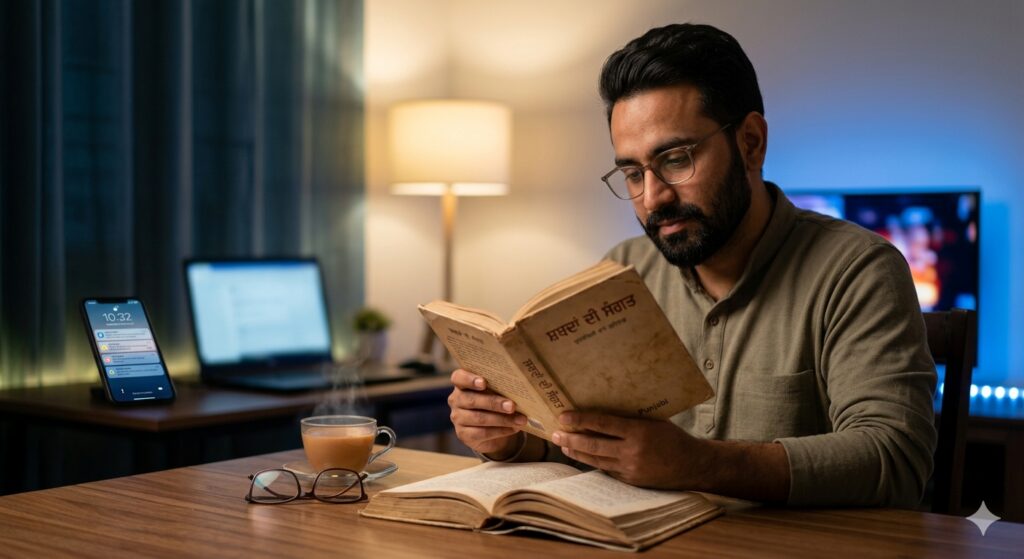 ਇੱਥੇ ਇਹ ਗੱਲ ਵੀ ਸਮਝਣਯੋਗ ਹੈ ਕਿ ਪੜ੍ਹਨ ਦੀ ਇਹ ਯਾਤਰਾ ਕਿਸੇ ਇੱਕ ਦਿਨ ਦਾ ਫੈਸਲਾ ਨਹੀਂ ਹੁੰਦੀ, ਸਗੋਂ ਲਗਾਤਾਰ ਬਣਨ ਵਾਲੀ ਆਦਤ ਦਾ ਨਤੀਜਾ ਹੁੰਦੀ ਹੈ। ਅੱਜ ਦੇ ਡਿਜ਼ੀਟਲ ਯੁੱਗ ਵਿੱਚ ਭਾਵੇਂ ਅਸੀਂ ਈ-ਬੁੱਕਸ ਜਾਂ ਆਡੀਓ ਬੁੱਕਸ ਰਾਹੀਂ ਜਾਣਕਾਰੀ ਹਾਸਿਲ ਕਰ ਰਹੇ ਹਾਂ, ਪਰ ਪੰਨਿਆਂ ਦੀ ਖੜਕਾਹਟ ਅਤੇ ਕਾਗਜ਼ੀ ਕਿਤਾਬ ਦਾ ਠਹਿਰਾਓ ਅੱਜ ਵੀ ਮਨੁੱਖੀ ਮਨ ਨੂੰ ਡੂੰਘੀ ਇਕਾਗਰਤਾ ਬਖ਼ਸ਼ਦਾ ਹੈ। ਮਾਧਿਅਮ ਕੋਈ ਵੀ ਹੋਵੇ, ਮਕਸਦ ਸ਼ਬਦਾਂ ਨਾਲ ਜੁੜਨਾ ਅਤੇ ਉਨ੍ਹਾਂ ਨੂੰ ਜੀਵਨ ਵਿੱਚ ਉਤਾਰਨਾ ਹੋਣਾ ਚਾਹੀਦਾ ਹੈ।