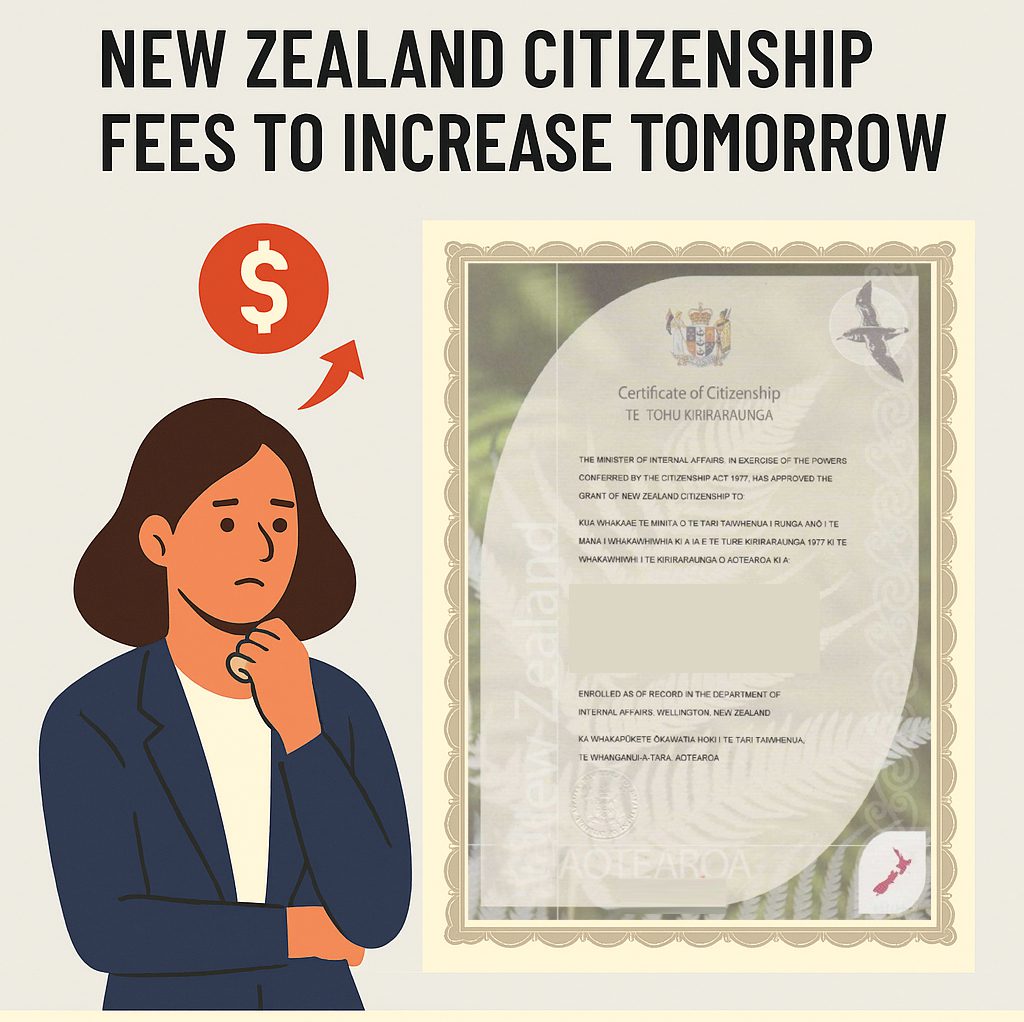 ਨਿਊਜ਼ੀਲੈਂਡ ਦੀ ਨਾਗਰਿਕਤਾ ਲਈ ਅਰਜ਼ੀ ਫੀਸਾਂ ਵਿੱਚ 21 ਨਵੰਬਰ ਤੋਂ 19.09% ਦਾ ਵਾਧਾ ਵਾਧਾ