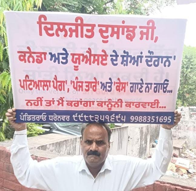 ਪੰਡਿਤਰਾਓ ਵੱਲੋਂ ਦਲਜੀਤ ਦੁਸਾਂਝ ਨੂੰ ਵਿਦੇਸ਼ ਫੇਰੀ ਦੌਰਾਨ ਪਟਿਆਲਾ ਪੈੱਗ, 5 ਤਾਰੇ ਅਤੇ ਕੇਸ ਵਰਗੇ ਬਦਨਾਮ ਗਾਣੇ ਮੰਚ ਤੋਂ ਨਾ ਗਾਉਣ ਦੀ ਕੀਤੀ ਗਈ ਅਪੀਲ।