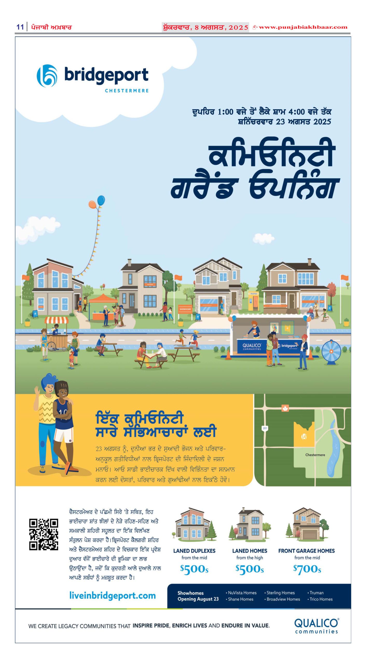 Qualico Communities and Bridgeport’s builders will be celebrating the Grand Opening with an event on: